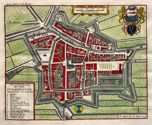 Purmerend Stadsplattegrond in vogelvluchtperspectief - J Janssonius - 1657