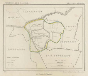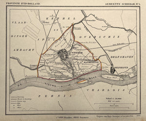 Schiedam, stadsplattegrond - J Kuijper / H Suringar - ca. 1867